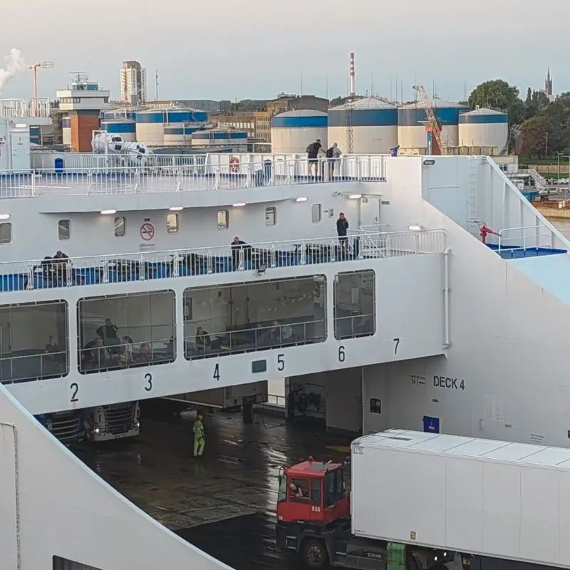 Tiek DFDS tiek TT line keltų linijos kelia į Karslhamną kasdien išskyrus penktadieniais.