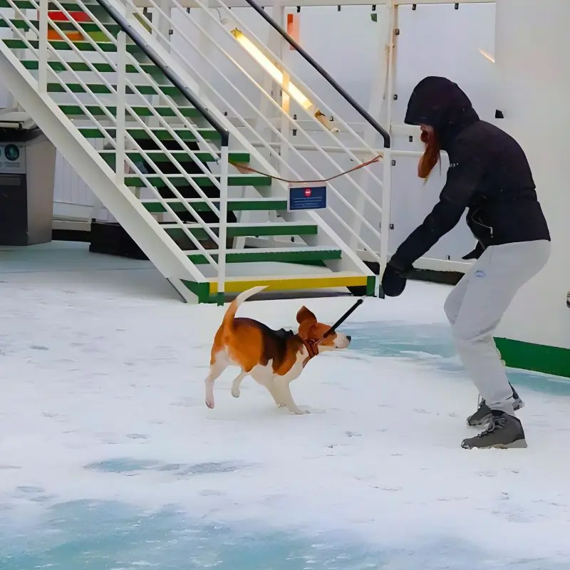Trumpa kelionė laivu gyvūnui tikrai didelis privalumas, nes maži gyvūnėliai dažnai patiria stresą, pasikeitus aplinkai. Dėl streso prasideda viduriavimas, pykinimas ir kitokios bėdos. Greičiausiai, kad gyvūnas kaip ir žmogus gali sirgti jūros liga, nes yra atvejų kai gyvūnus pykina automobiliuose. O juk žinome, kad dėl sutrikimų vestibiuliariniame aparate tokių nemalonių pojūčių dažnai patiria ir žmonės.